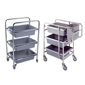 Xe thu gom bát đĩa được biết đến với rất nhiều cái tên gọi như xe dọn đồ nhà hàng, xe đẩy thu dọn thức ăn, xe dọn chén dĩa dơ. Dòng xe dọn bàn ăn này thường được sử dụng trong các nhà hàng, khách sạn cao cấp, phòng ăn công ty, trung tâm tiệc cưới, quán ăn,… Được yêu thích hơn cả chính là dòng xe thu gom bát đĩa 3 tầng khung inox, khay đựng bằng nhựa, bánh xe hỗ trợ di chuyển bởi chúng có độ tiện dụng cao. Dưới đây là một số mẫu xe dọn bát đĩa nhà hàng để bạn tham khảo.